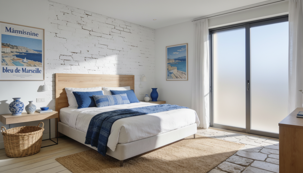 Une chambre “Provence” joue sur la lumière, les tons naturels et la douceur du Sud